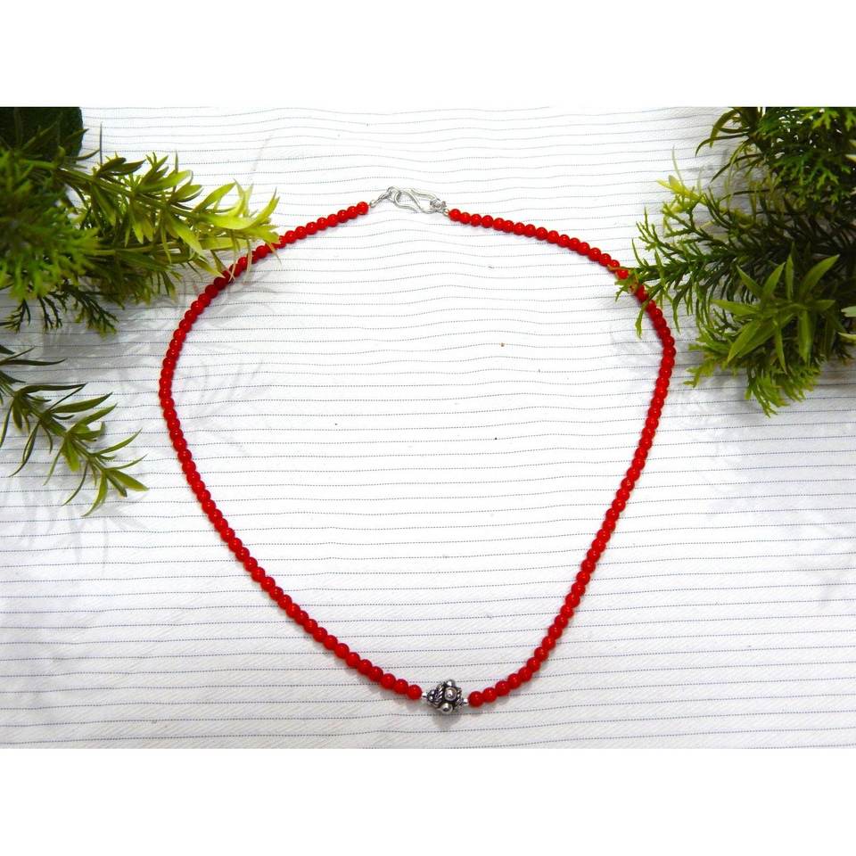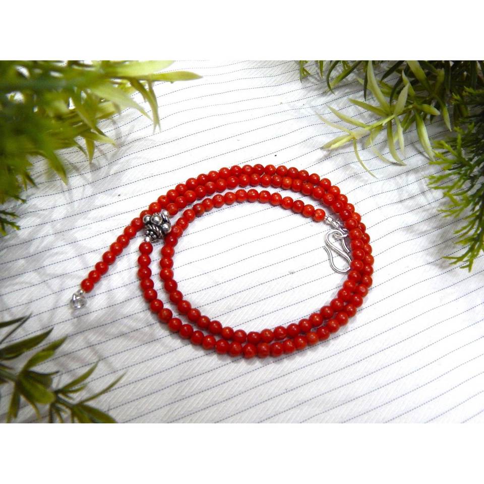 Collar de cuentas de Coral italiano hecho a mano, joyería de piedras preciosas naturales genuinas, accesorio de moda hecho a mano de plata de ley de 4 × 4 mm