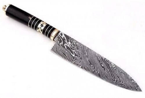 Juego de cuchillos de chef profesional de acero de Damasco de 8 pulgadas estilo japonés hecho a mano cubiertos de cocina de acero inoxidable con Funda de cuero