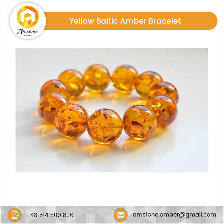 Joyería hecha a mano de Color amarillo pulsera de ámbar Báltico perfectamente redonda cuentas