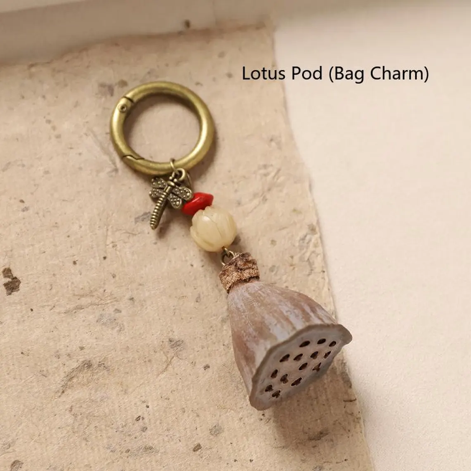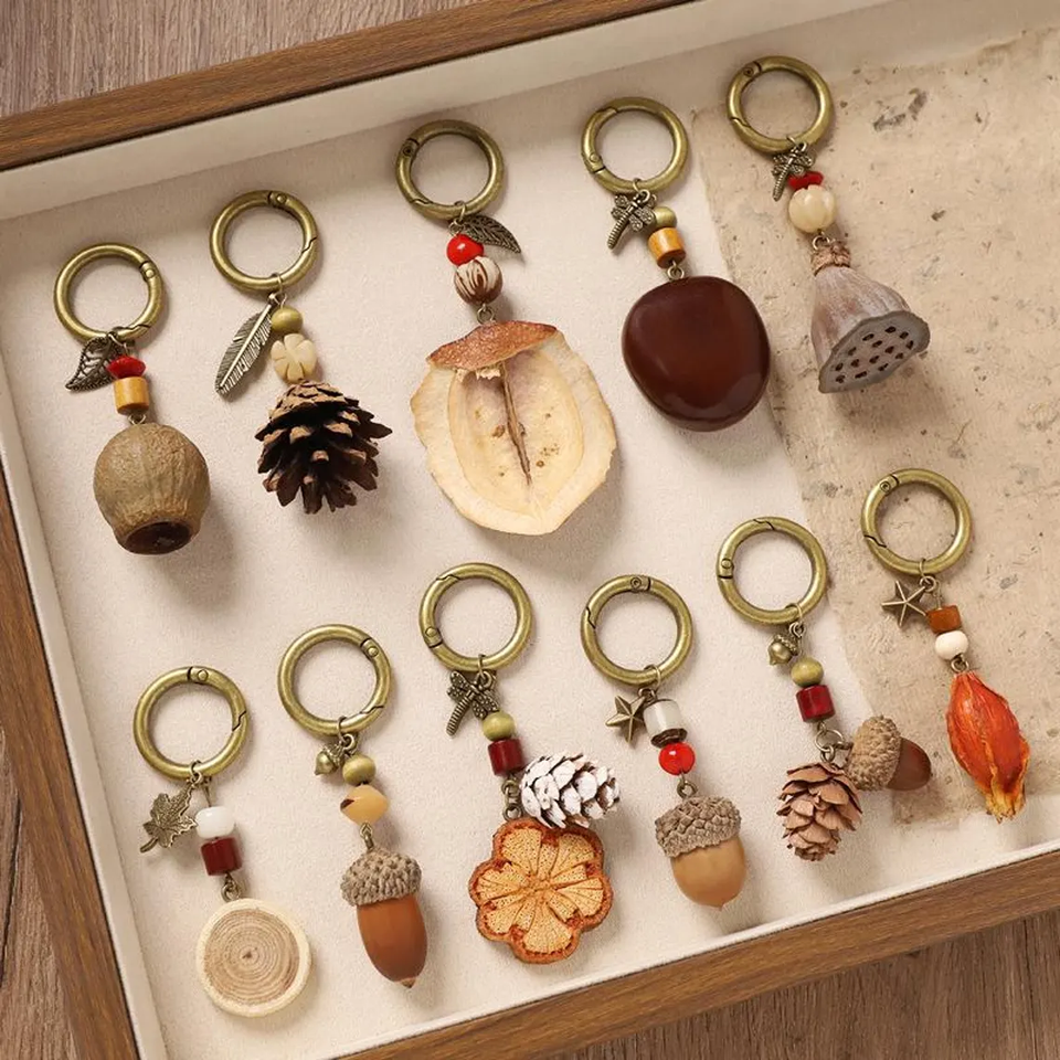 Llavero Artesanal con Colgante de Semilla de Bodhi Botánica, Estilo Vintage y de Moda