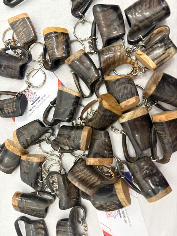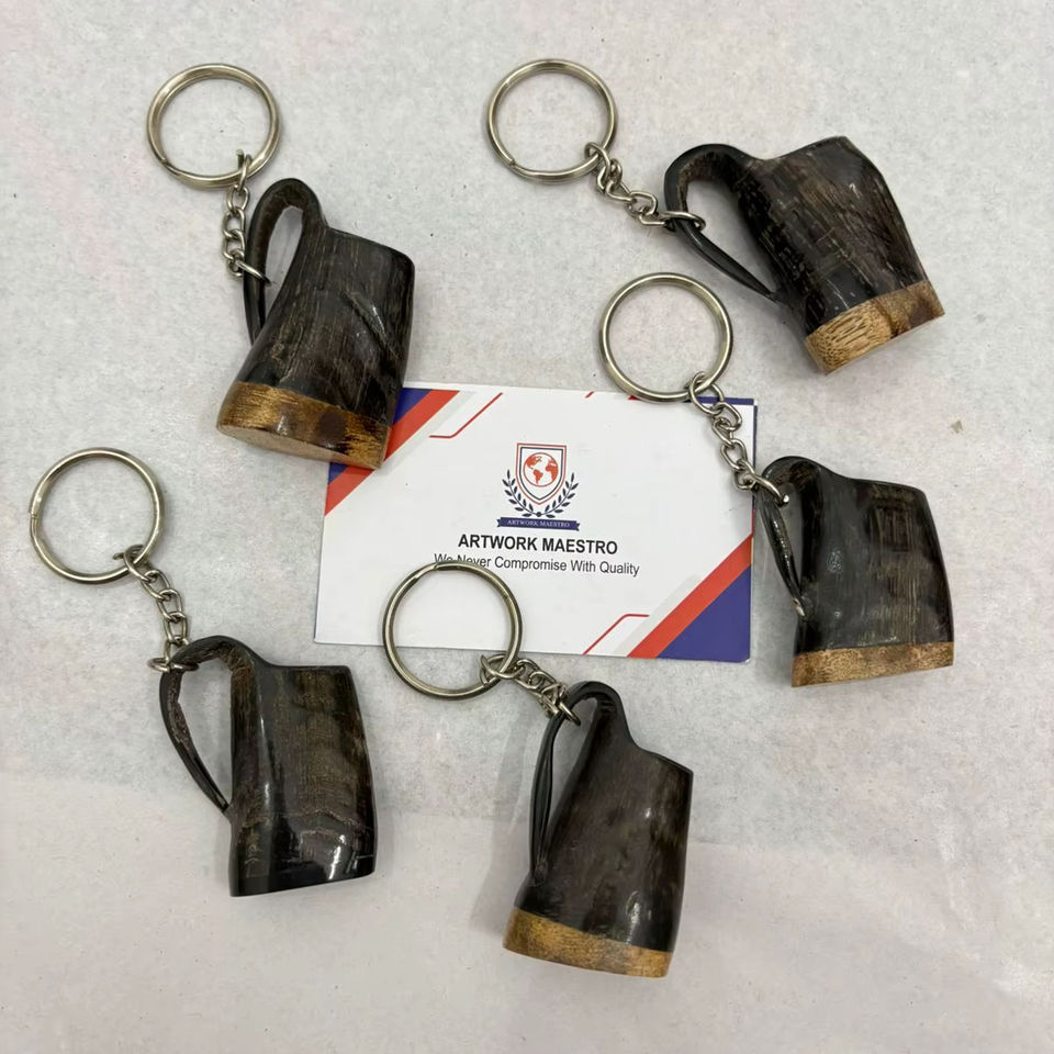 Llaveros hechos a mano con cuerno de búfalo 100% genuino para una auténtica sensación medieval, accesorios únicos para bolsas de bicicleta estilo vikingo.