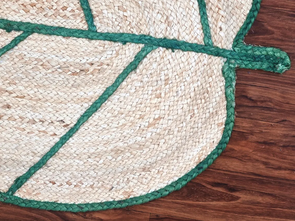 Alfombra de yute estilo Kilim hecha a mano, patrón abstracto decorativo con mechones, forma de hoja, cabecera, entrada, Patio exterior, sala de estar