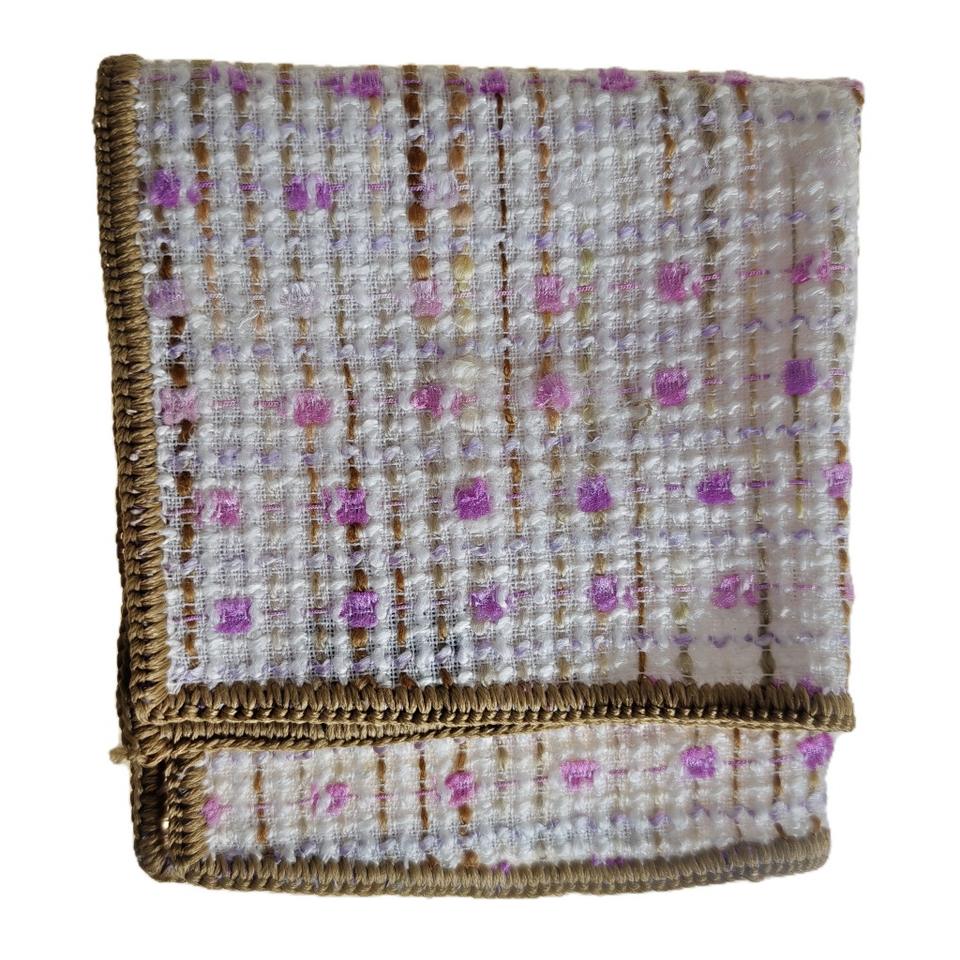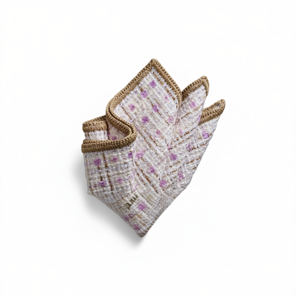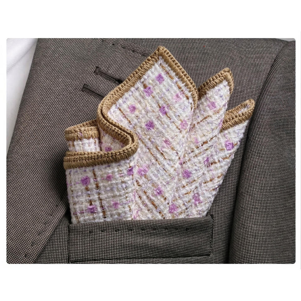 Pañuelo de bolsillo con borde de punto artesanal y bordado a mano, de lana morada y beige, estilo británico, para trajes de blazer, elegante para cenas