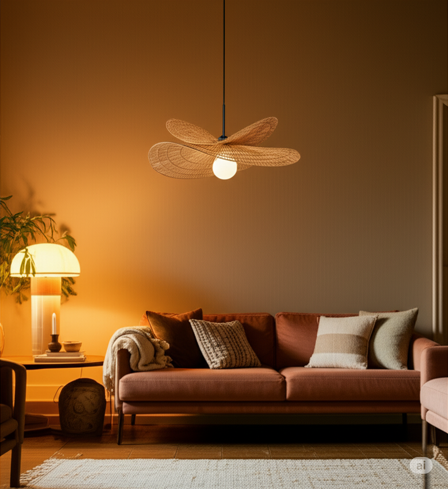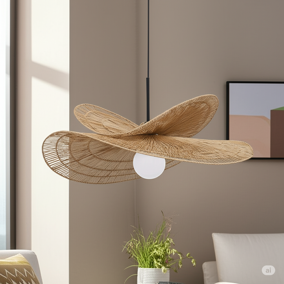Lámpara LED hecha a mano, colgante de ratán tejido vietnamita, pantalla colgante, moderna y tradicional para sala de estar