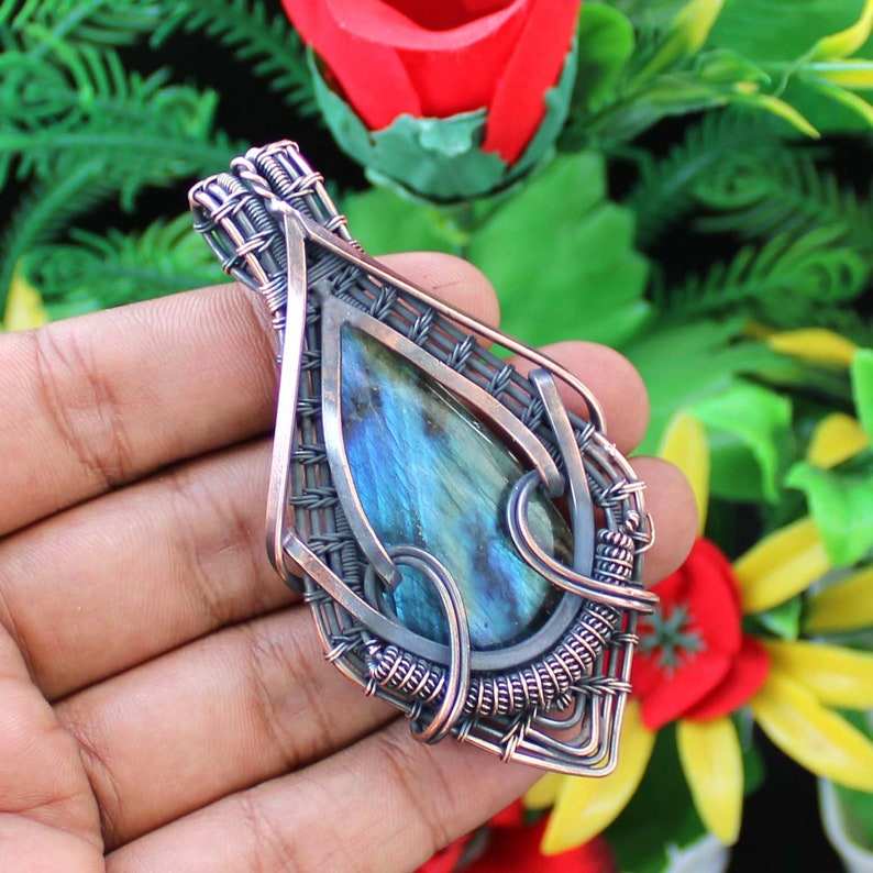 Colgante de alambre de labradorita hecho a mano, joyería de cobre, regalo artesanal único para ella, joyería de piedras preciosas naturales