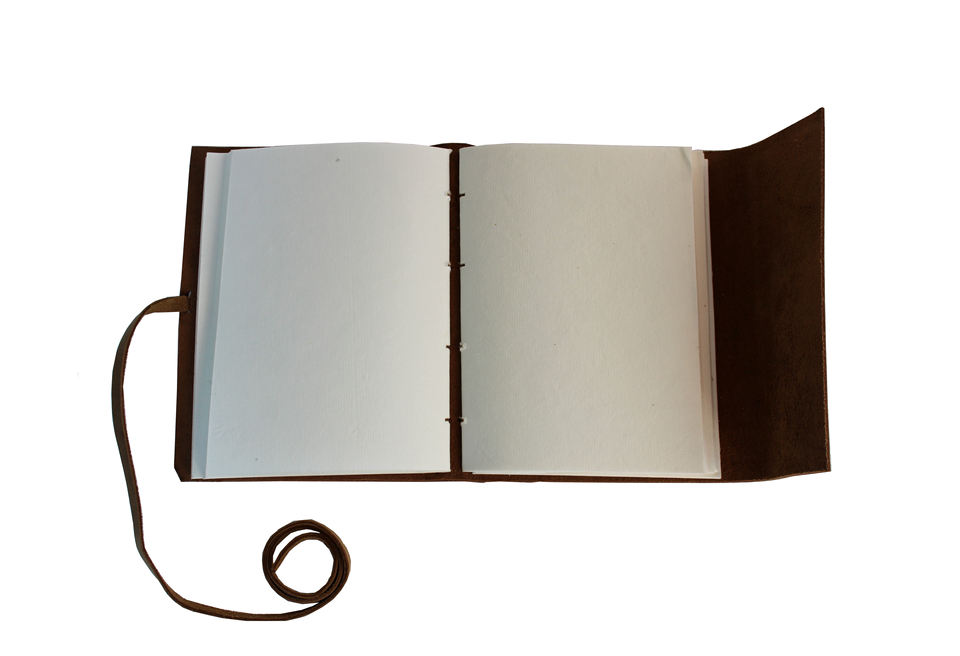 Diario de Cuero Marrón Repujado Hecho a Mano con Costura de Hilo, Tapa Dura, Cierre de Tira y Papel Personalizado