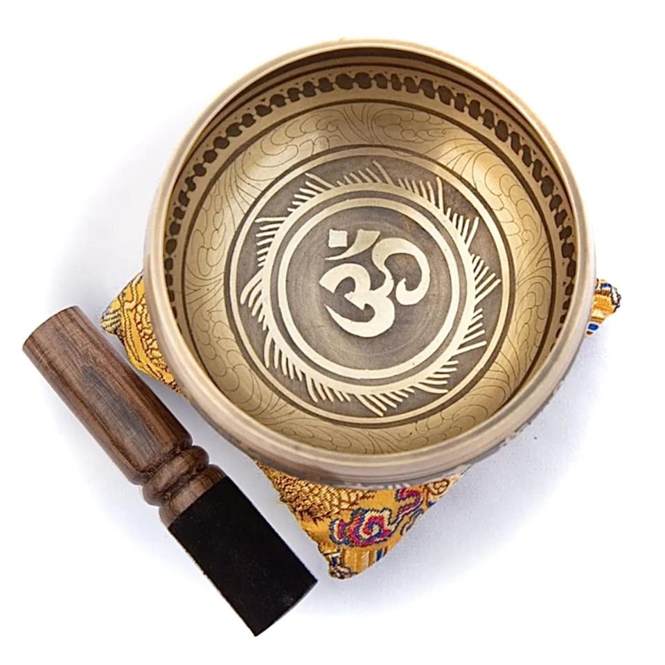 Cuenco de sonido de meditación de 7 metales Chakra de latón del Himalaya grande hecho a mano utilizado para Yoga y meditación Cuenco de Canto de diseño Om