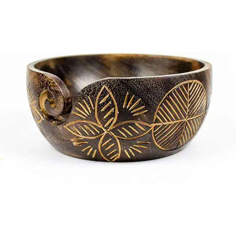 Cuenco de hilo de madera grande hecho a mano para tejer y ganchillo Organizador portátil para accesorios y suministros de exportador indio