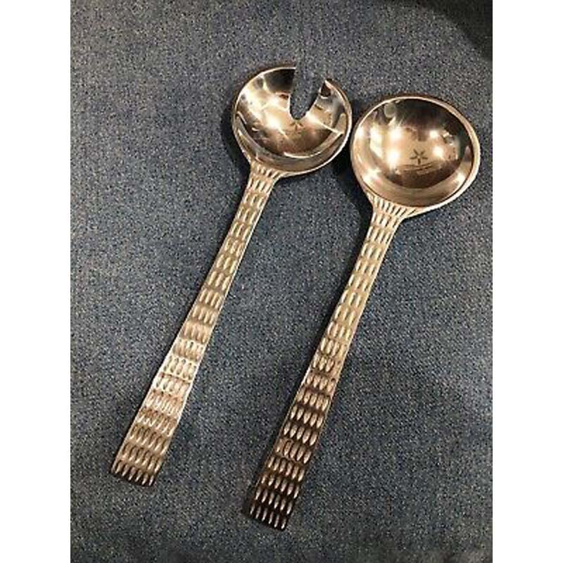Mango de diseño láser hecho a mano, juego de cuchara y tenedor de ensalada de diseñador pulido mate plateado para boda