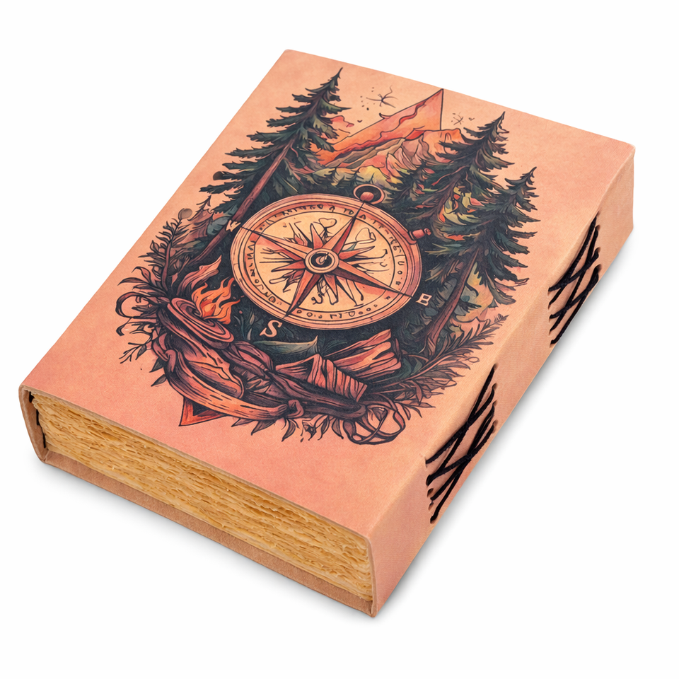 Diario de Viaje Personalizado, Hecho a Mano, con Cubierta de Cuero, Brújula de Aventura Impresa y Grabada, Cuaderno de Viaje Vintage, Libro de Bocetos, Personalizable para Exploradores
