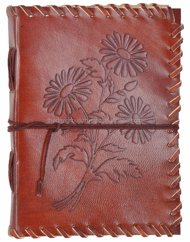 Diario de flores de cuero hecho a mano Vintage puntada lateral flor en relieve cuaderno de cuero Escritura y bocetos viajes, negocios, uso