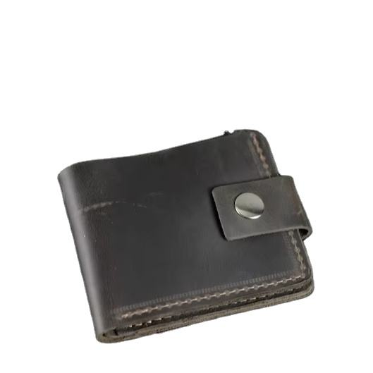 Cartera de cuero hecha a mano para hombre, cartera compacta con cierre a presión y tarjetero Vintage Crazy Horse, billetera plegable, con cierre a presión, para hombre