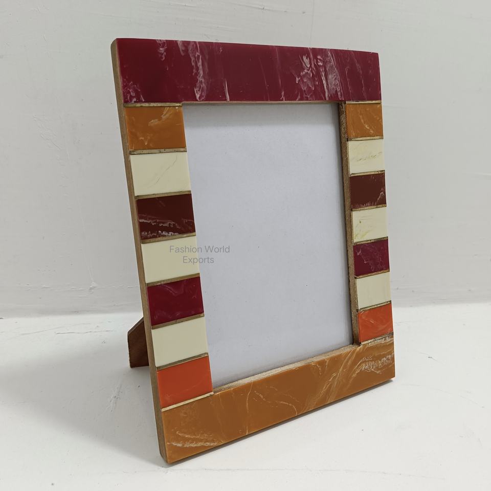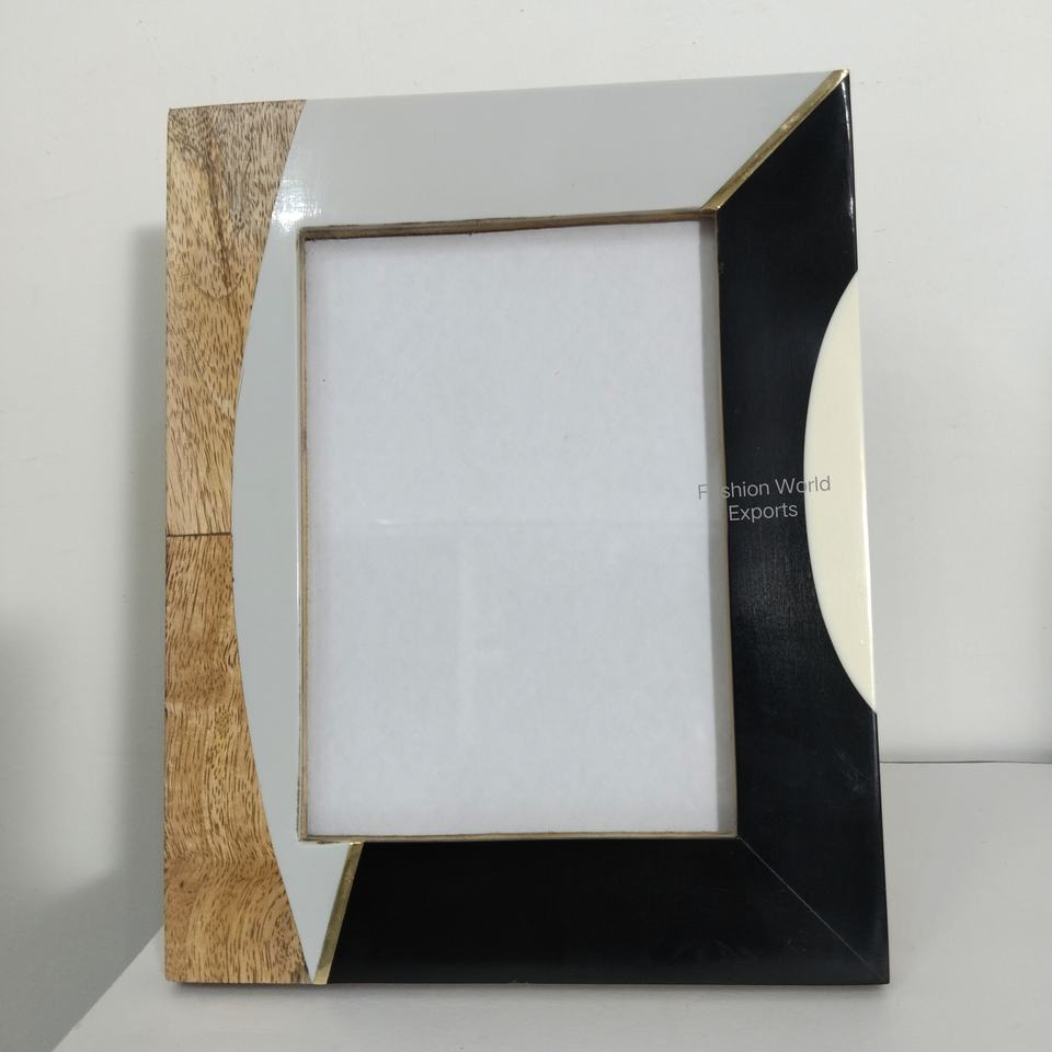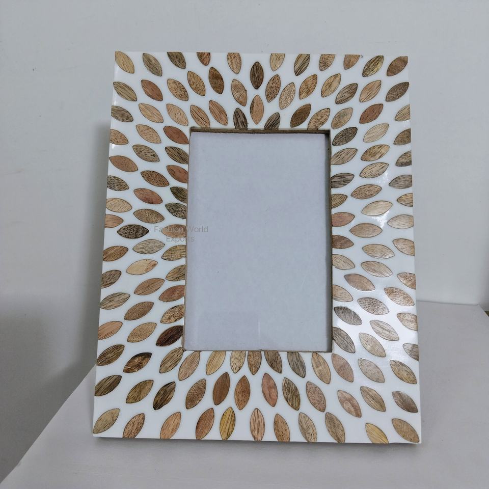 Marco de fotos con incrustaciones de resina con diseño de leopardo hecho a mano, madera con aspecto Natural, marco de fotos de fundición de resina hecho a mano en la India
