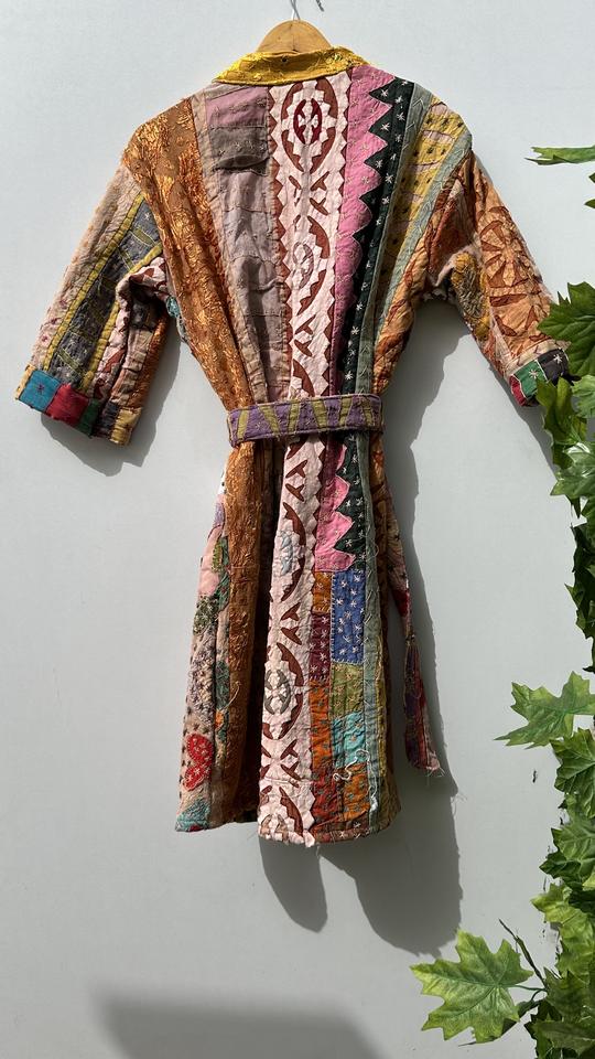 Hecho a mano largo Multi Patchwork algodón Kantha Chaquetas Mujer Vintage acolchado abrigo de invierno Casual primavera estilo tamaño libre