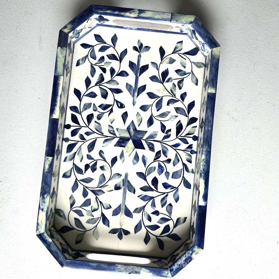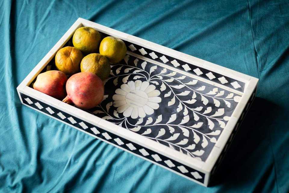 Bandeja Decorativa de Lujo Hecha a Mano con Incrustaciones de Hueso, Ecológica, Duradera y Personalizable