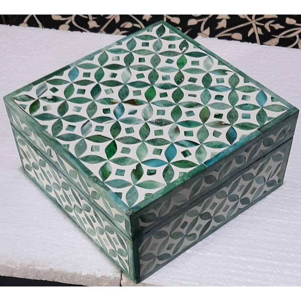 Caja de Almacenamiento de Lujo Hecha a Mano con Incrustaciones de Hueso para el Hogar u Oficina, Organizador Decorativo de Joyas para Regalo