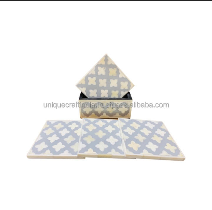 Posavasos de té con incrustaciones de hueso personalizado de lujo hecho a mano seguro para uso doméstico indio hermosas artesanías para esteras y almohadillas
