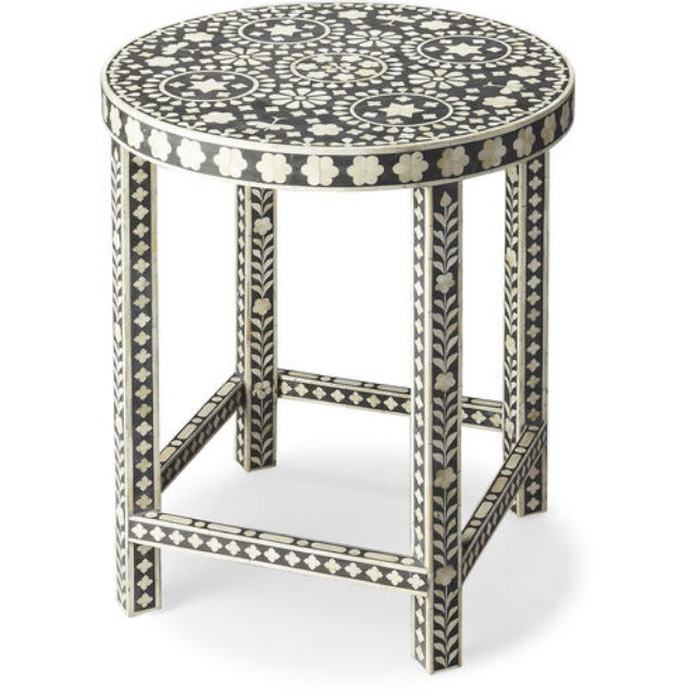 Taburete de consola con incrustaciones de hueso indio de lujo hecho a mano, mesa auxiliar de diseño de tendencia para entrada o dormitorio recomendado