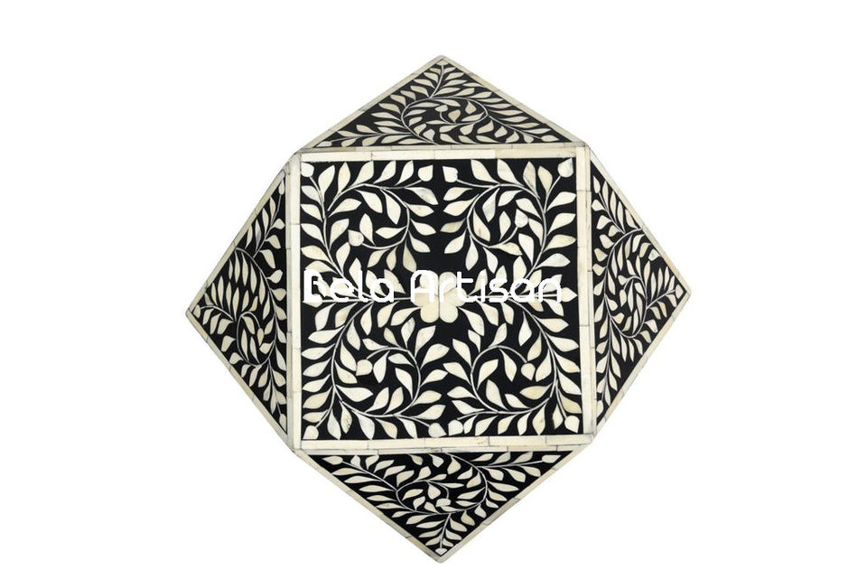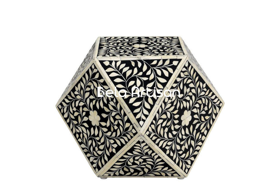 Taburete de Resina de Lujo Hecho a Mano con Incrustaciones, Mesa Auxiliar de Madera de Diseño Moderno con Incrustaciones de Nácar para Decoración de Almacenes