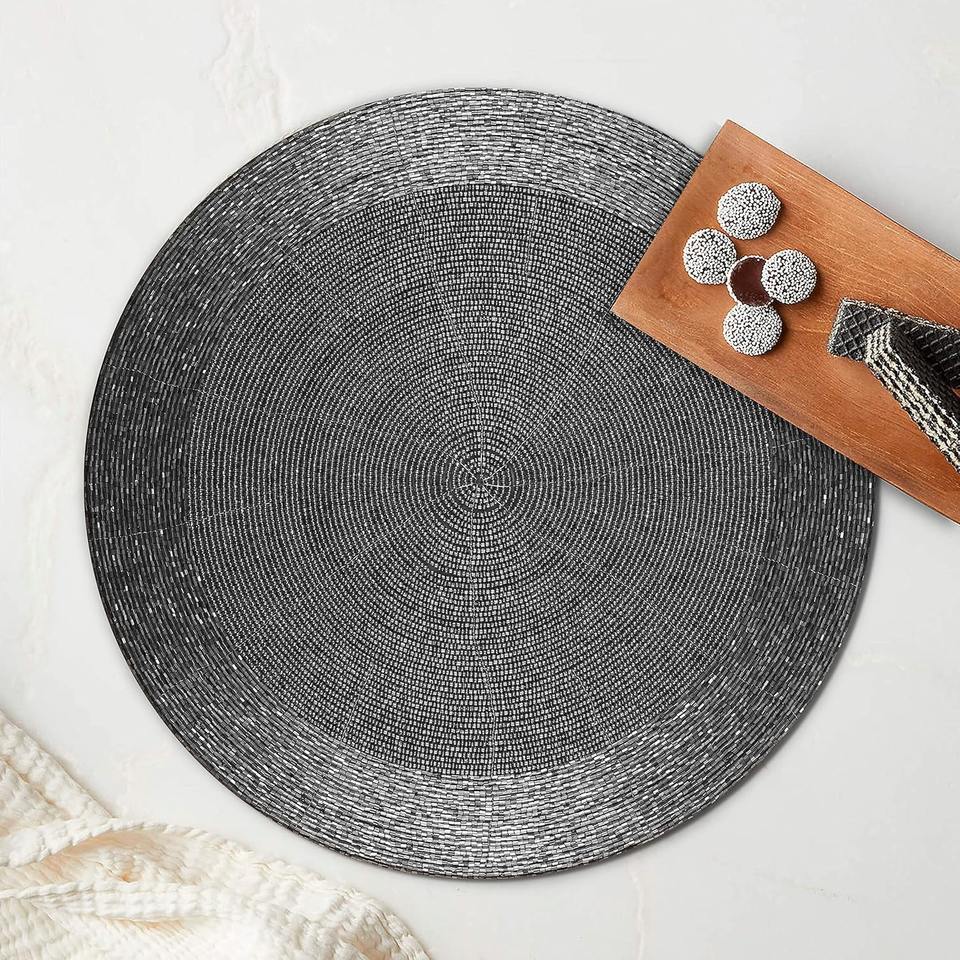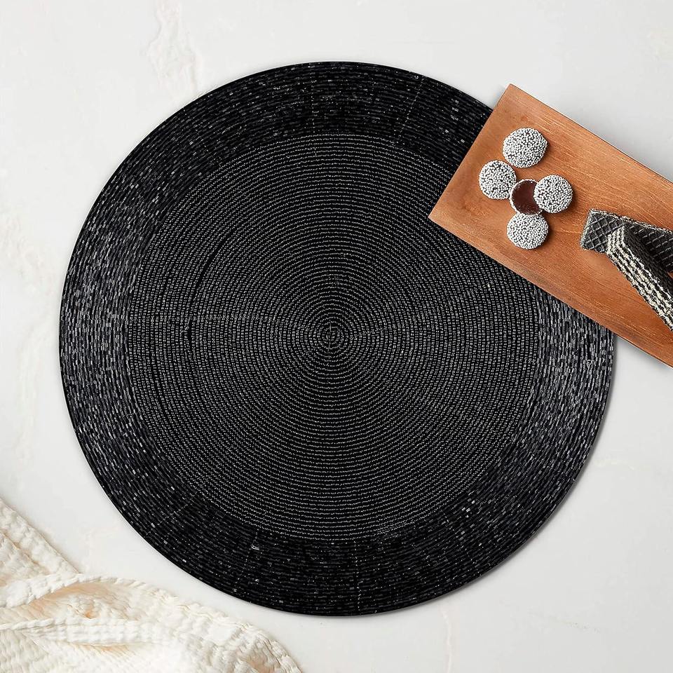 Salvamanteles de Cuentas de Semillas de Lujo Hecho a Mano en India, Base Cuadrada de Vidrio con Patrón Ornamental para la Elaboración de Joyas