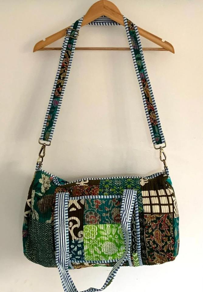 Bolsa de Viaje de Fin de Semana de Lujo Hecha a Mano, Verde Acolchada, Gran Capacidad, Duradera, de Algodón, para Gimnasio