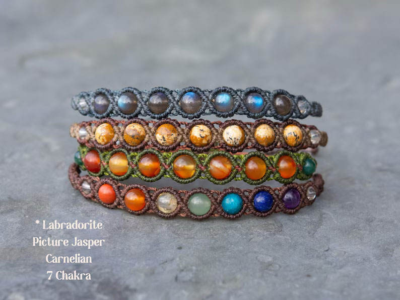Brazalete de Macramé Hecho a Mano con 7 Chakras y Turquesa, Ajustable, Estilo Vintage Boho, Joyería de Yoga, Regalo Unisex, HARI OM CREATIONS