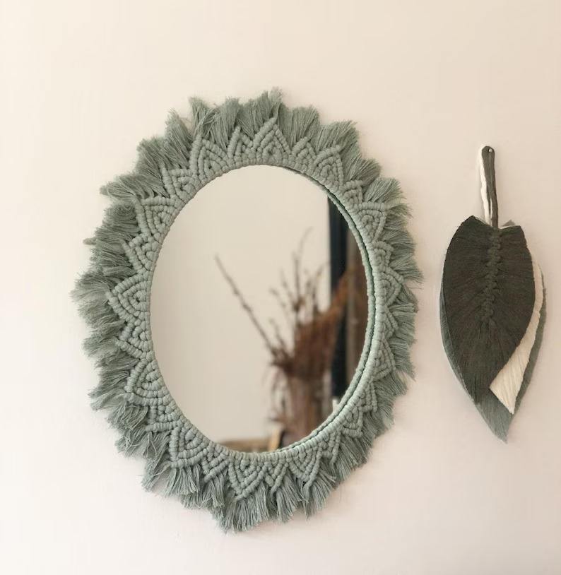 Espejo para colgar en la pared de macramé hecho a mano para decoración del hogar con cordón de algodón 100% de calidad superior a precio mayorista