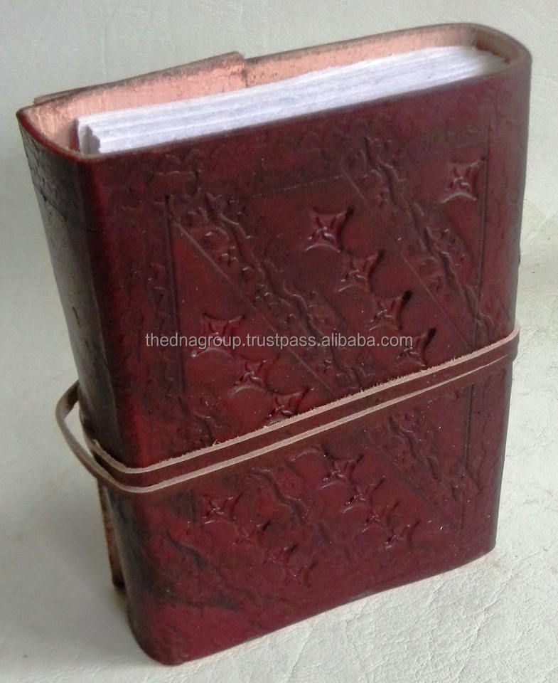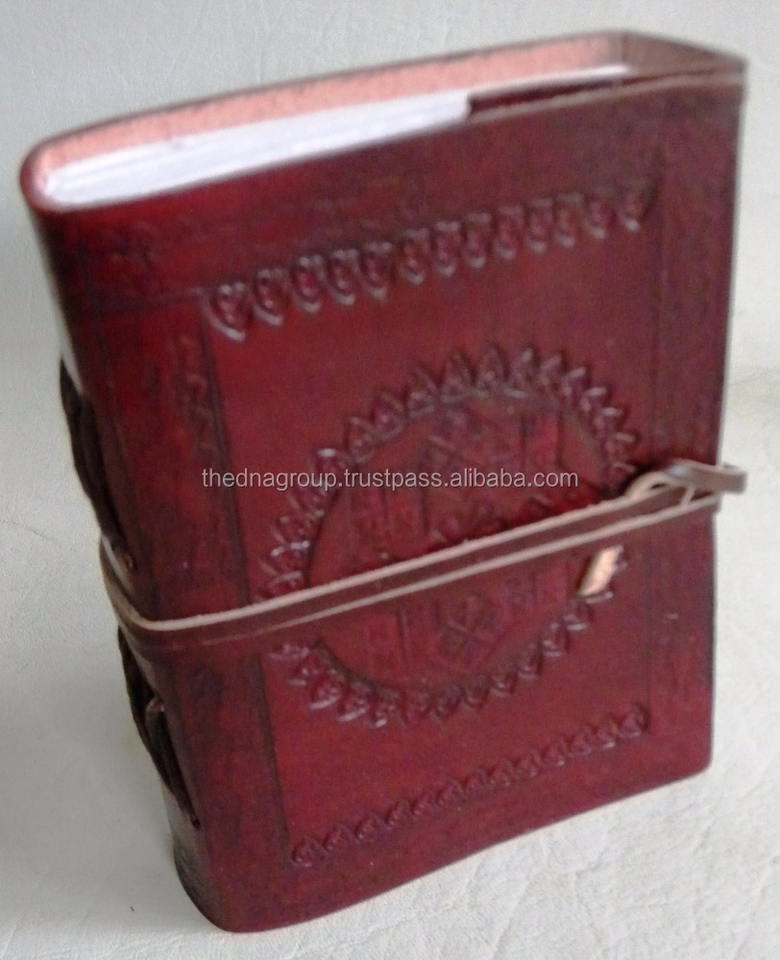 Cuaderno de cuero con cierre de correa impreso círculo redondo en relieve mandala hecho a mano. Diario de cuero repujado mandala