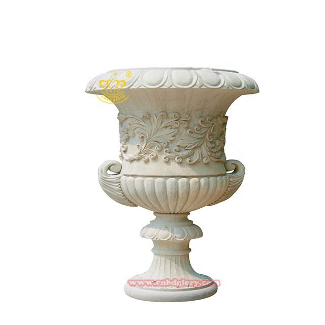 Maceta de mármol hecha a mano para jardín al aire libre y decoración de parque diseño de escultura de arte de piedra personalizado para paisaje de calle y jardín