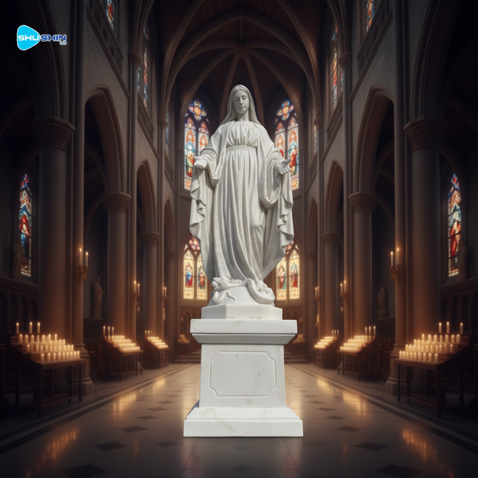 Escultura de Mármol Hecha a Mano, Estatua de la Inmaculada Concepción de la Virgen María, Figura Religiosa de Tamaño Real para Sala de Estar Interior