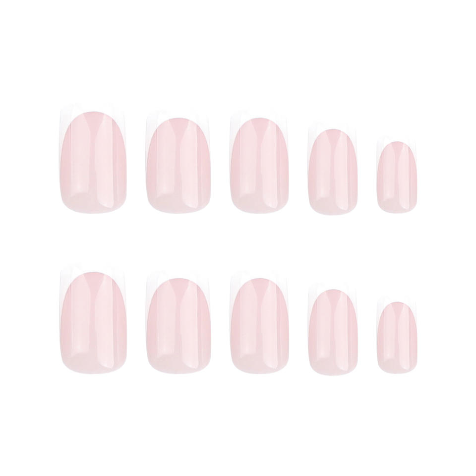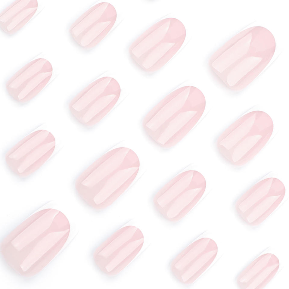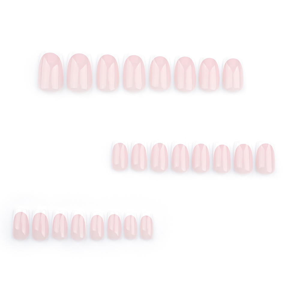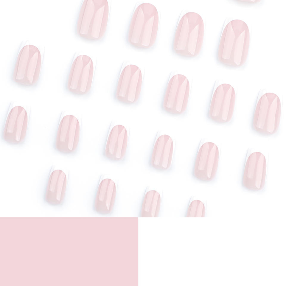 Uñas Postizas Hechas a Mano, Medianas, Cuadradas, Cobertura Completa, Diseño Francés Rosa y Blanco, Estilo Suave, Pre-Adheridas con Pegamento