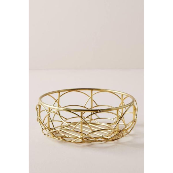 Cesta de Almacenamiento de Alambre Metálico Hecha a Mano con Asas, Chapado en Oro, Cestas Decorativas para Cocina, Hogar y Mesa