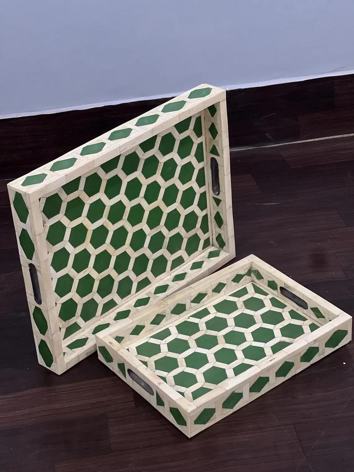 Mini bandeja de incrustaciones de hueso hecha a mano, elegante y ecológica, tocador decorativo sostenible y bandeja de exhibición, característica artesanal