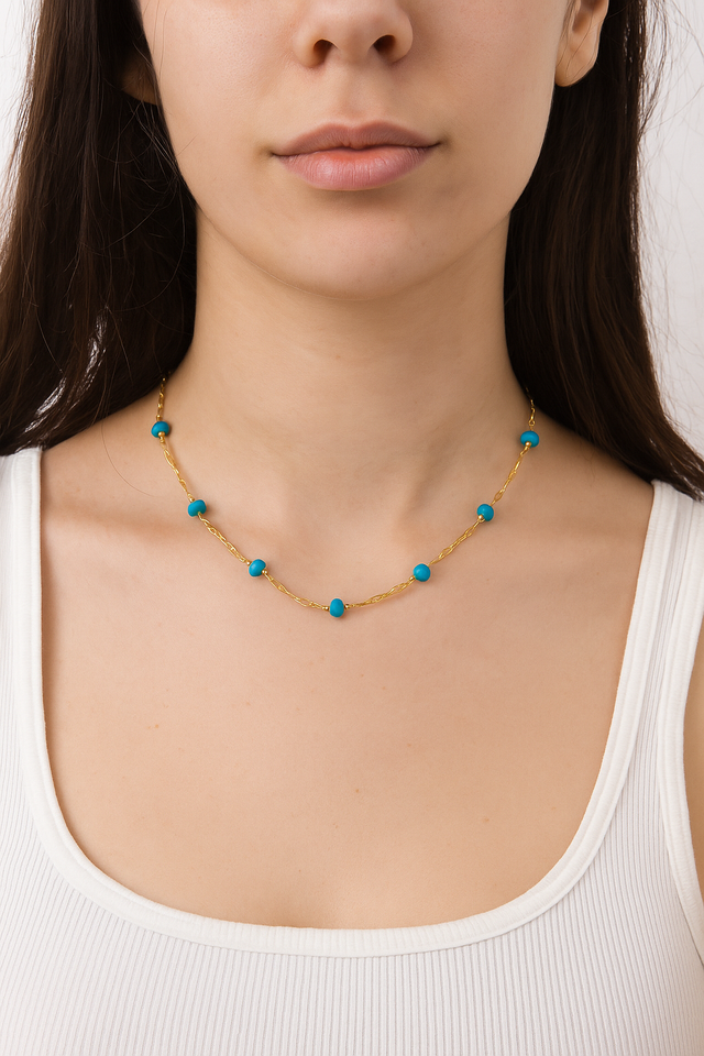 Collar de cadena chapado en oro bohemio mínimo hecho a mano para mujer delicada turquesa Rondelle Beads joyería de piedras preciosas de moda