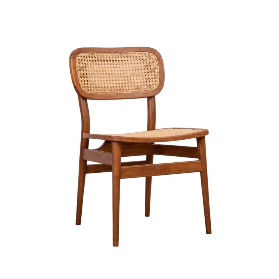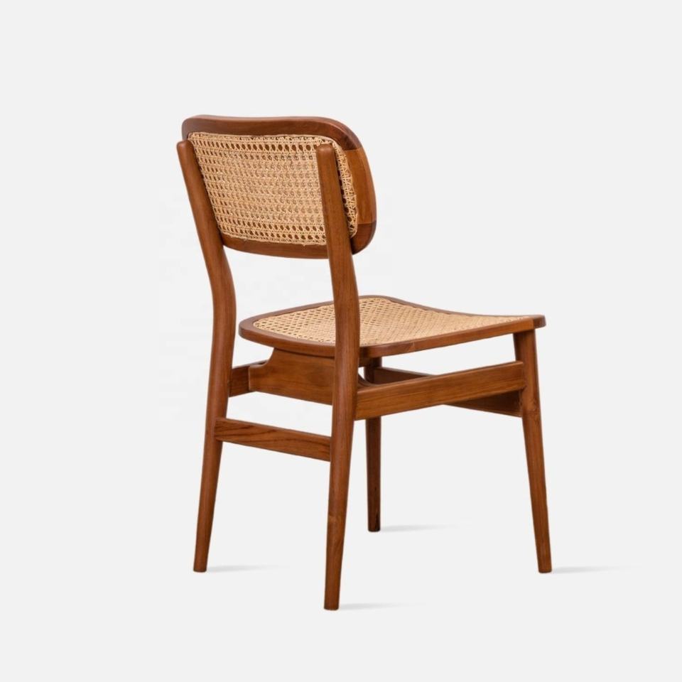 Material principal:Marco de madera de teca y asiento y respaldo de ratán