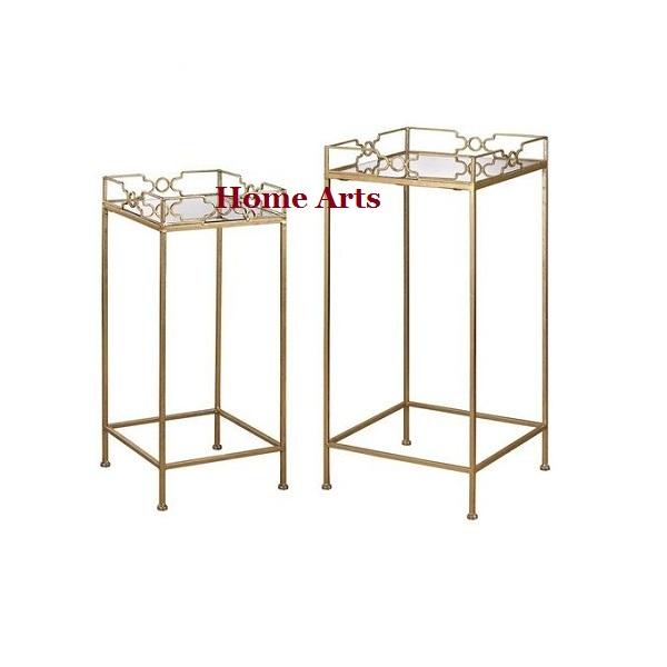 Espejo hecho a mano y bandeja de postre de metal con soporte Fabuloso diseño de color dorado Bandeja para servir alimentos a la venta
