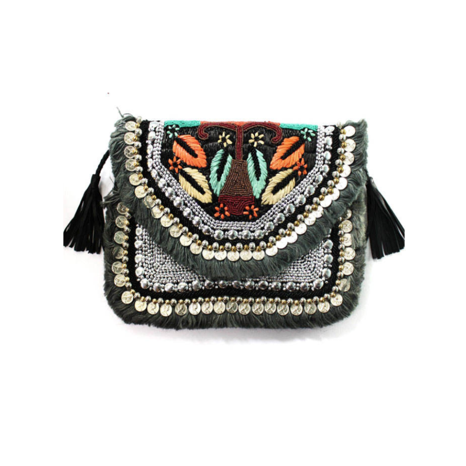Número de Modelo:Mirrorwork Embroidery Jute Coin Clutch
