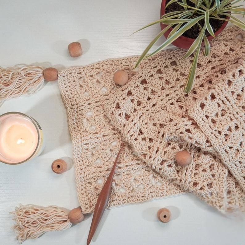 Camino de mesa de macramé bohemio moderno hecho a mano, decoración rústica de algodón para bodas, vacaciones y cenas de cumpleaños para Ramadán