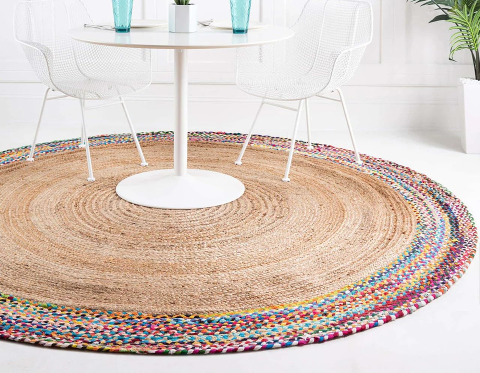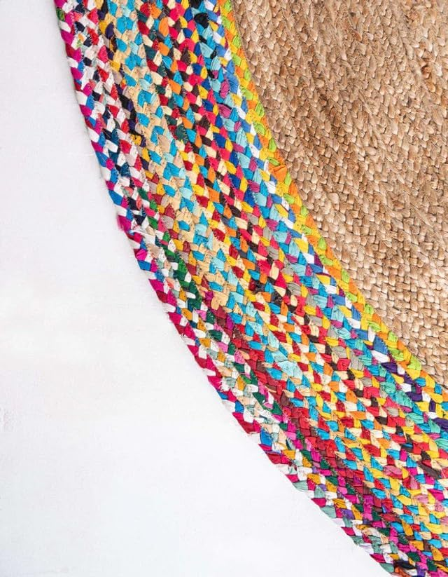 Alfombra de yute trenzada moderna hecha a mano, fibras naturales multicolores, 3x3 pies, dormitorio, sala de estar, casa de campo, juegos de alfombras estéticas