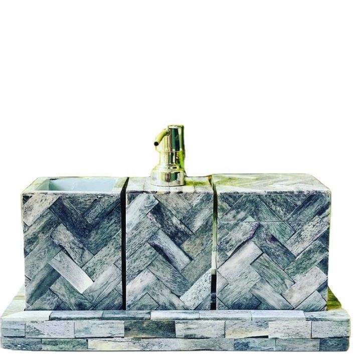 Juego de Baño de Diseño Moderno Hecho a Mano con Incrustaciones de Hueso, con Dispensadores de Jabón para Hoteles, Villas y Baños, Disponible a Precio de Mayoreo