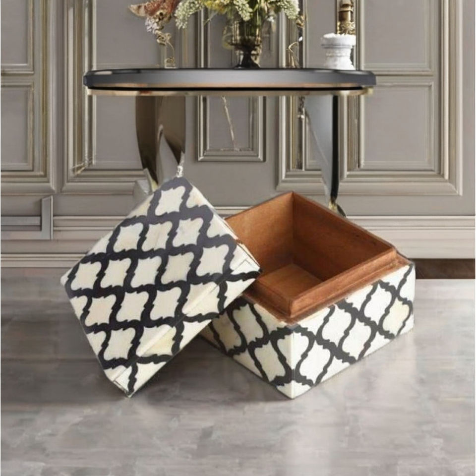 Caja de Almacenamiento de Joyas Cuadrada con Incrustaciones de Resina y Hueso, Diseño Geométrico Moderno, Hecha a Mano, Ecológica, Duradera, de Lujo, Artesanal y Decorativa