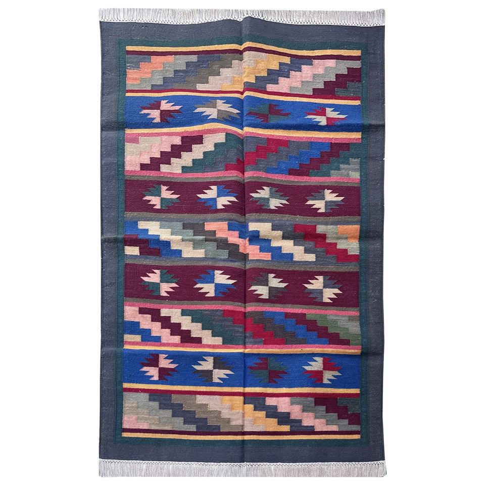 Conjunto de alfombra de área de tejido plano geométrico moderno hecho a mano, algodón teñido vegetal Natural personalizado, estilo indio, suministrado directamente indio