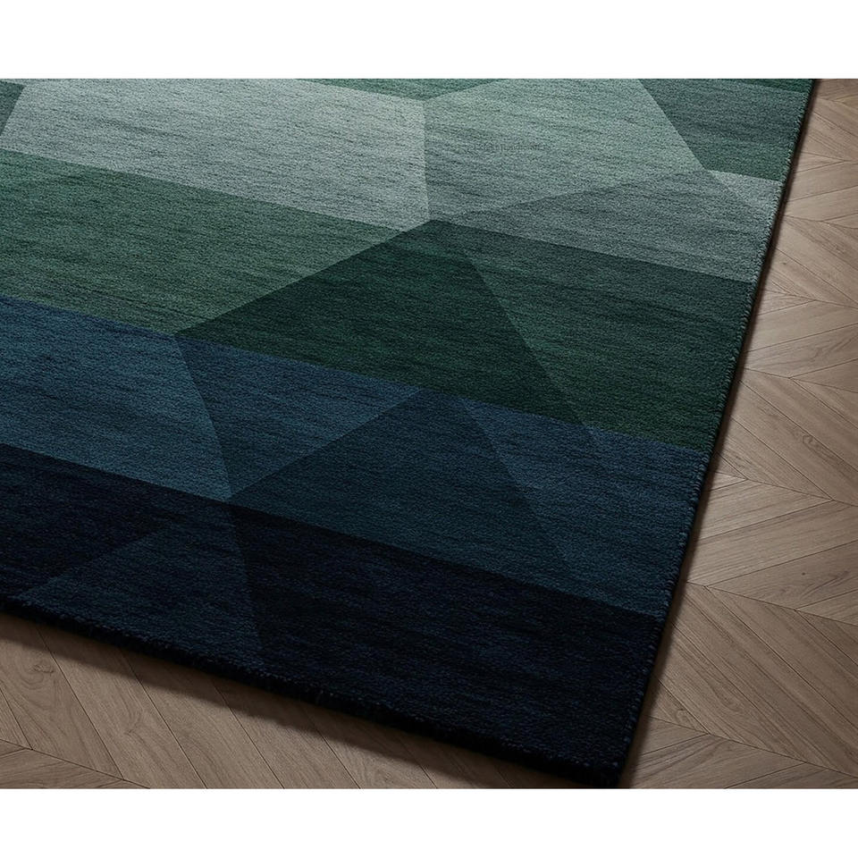 Alfombra de lana geométrica moderna hecha a mano, alfombra azul verde oscuro, tamaño personalizado, decoración del hogar, alfombra de la India para picnics
