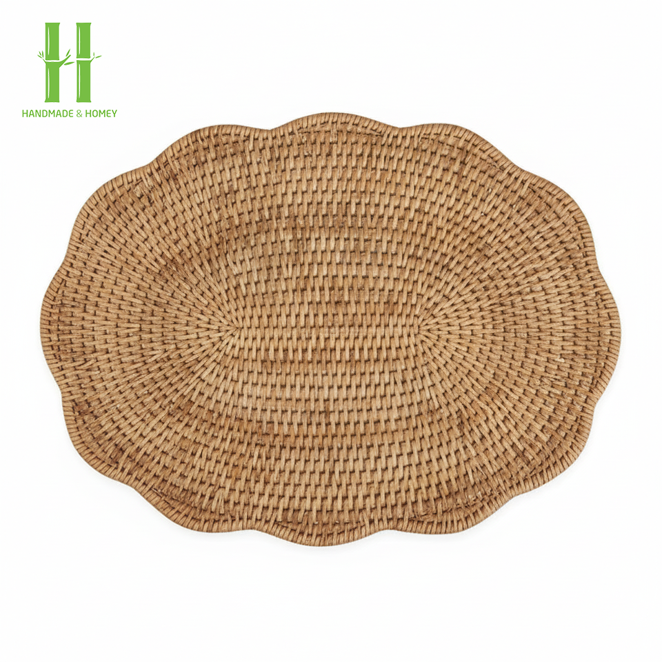 Manteles Individuales y Platos Base de Bambú Tejido a Mano, Estilo Bohemio Moderno, Ecológicos, para Comedor, Té, Fiestas y Cocina