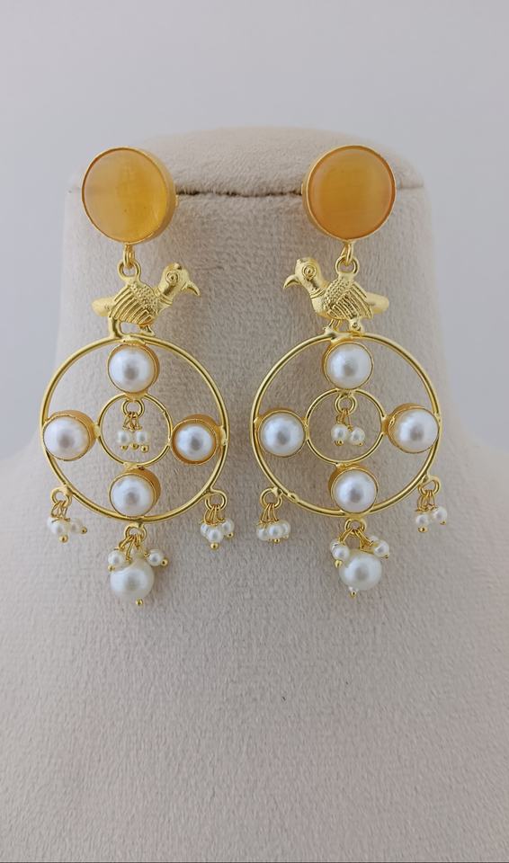 Juego de pendientes colgantes de latón pesado con diseño moderno hecho a mano, diseño de moda personalizable de piedra elegante para compra a granel