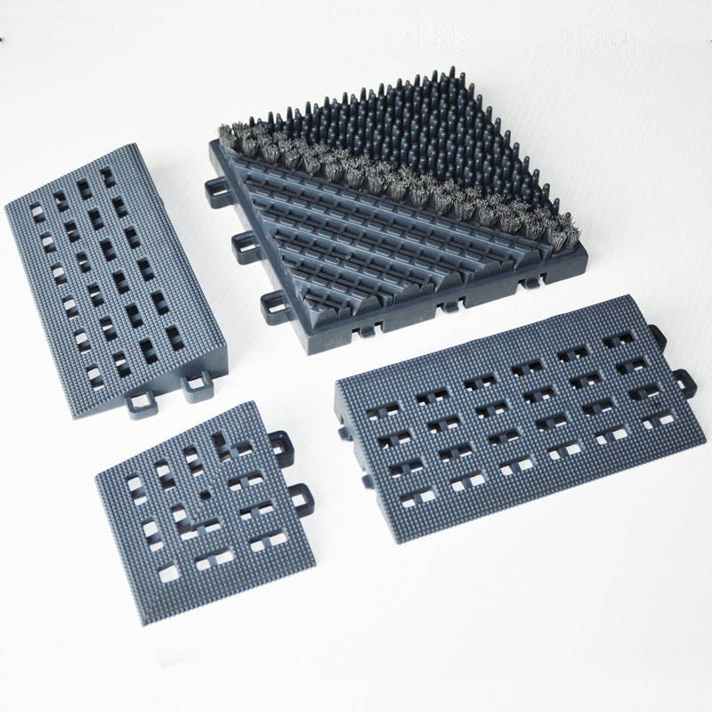 Alfombra de limpieza de pies y entrada de tres cepillos de nailon a cuadros modernos hechos a mano acolchada para edificios de oficinas hoteles escuelas