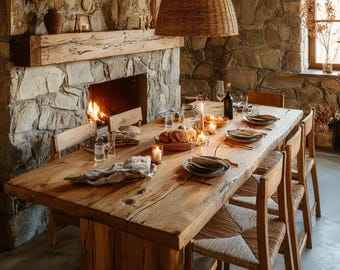 Mesa de comedor de madera maciza moderna hecha a mano para uso en apartamentos y hoteles, muebles ecológicos