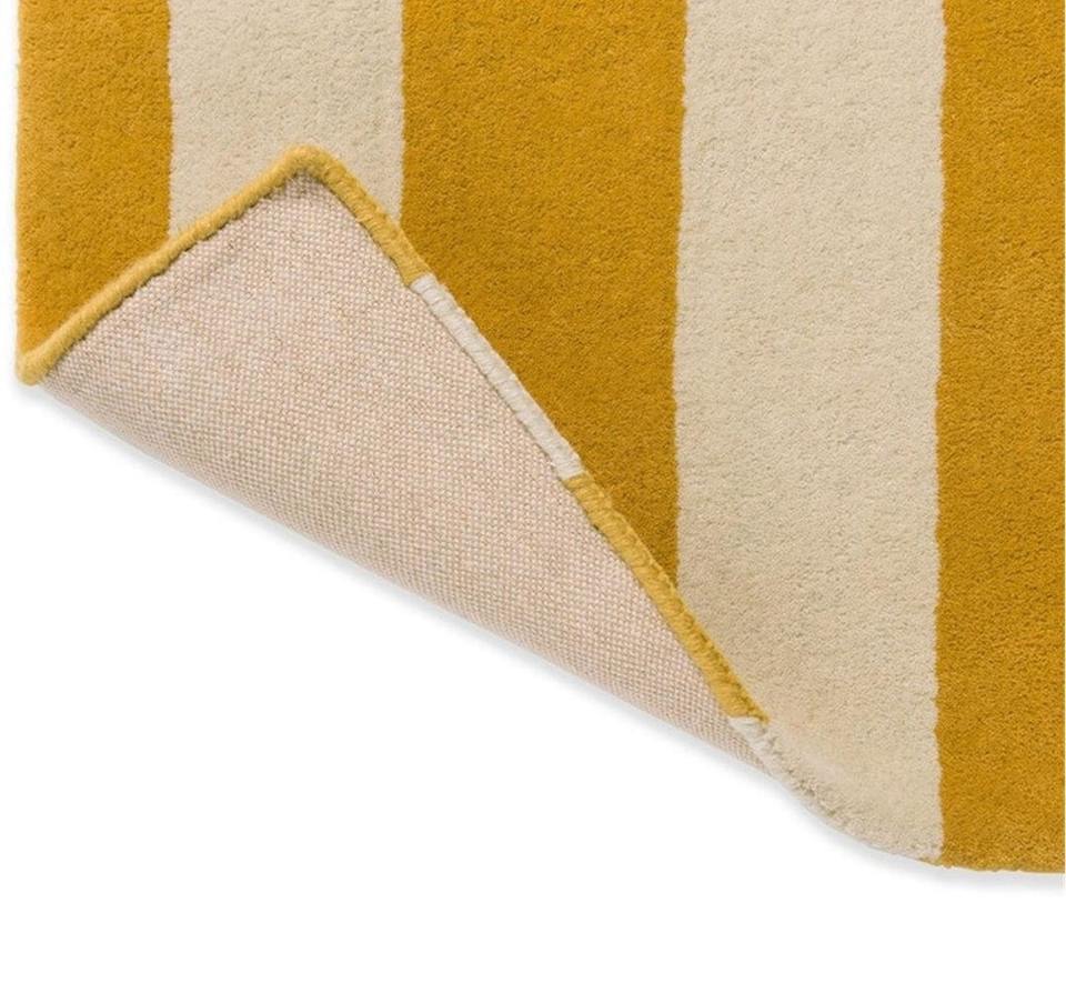Alfombra moderna hecha a mano de lana a rayas, alfombra lavable con mechones a mano en mostaza, marfil, azul marino, gris, Alfombra de área de bloque de Color para sala de estar