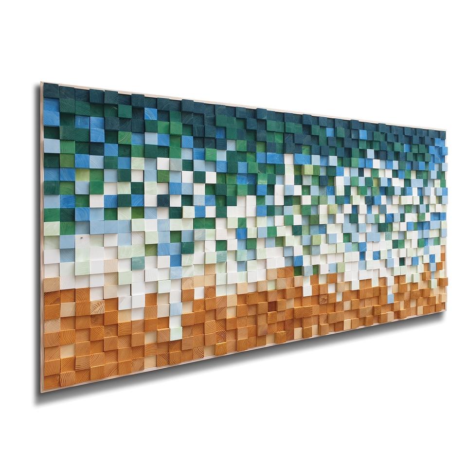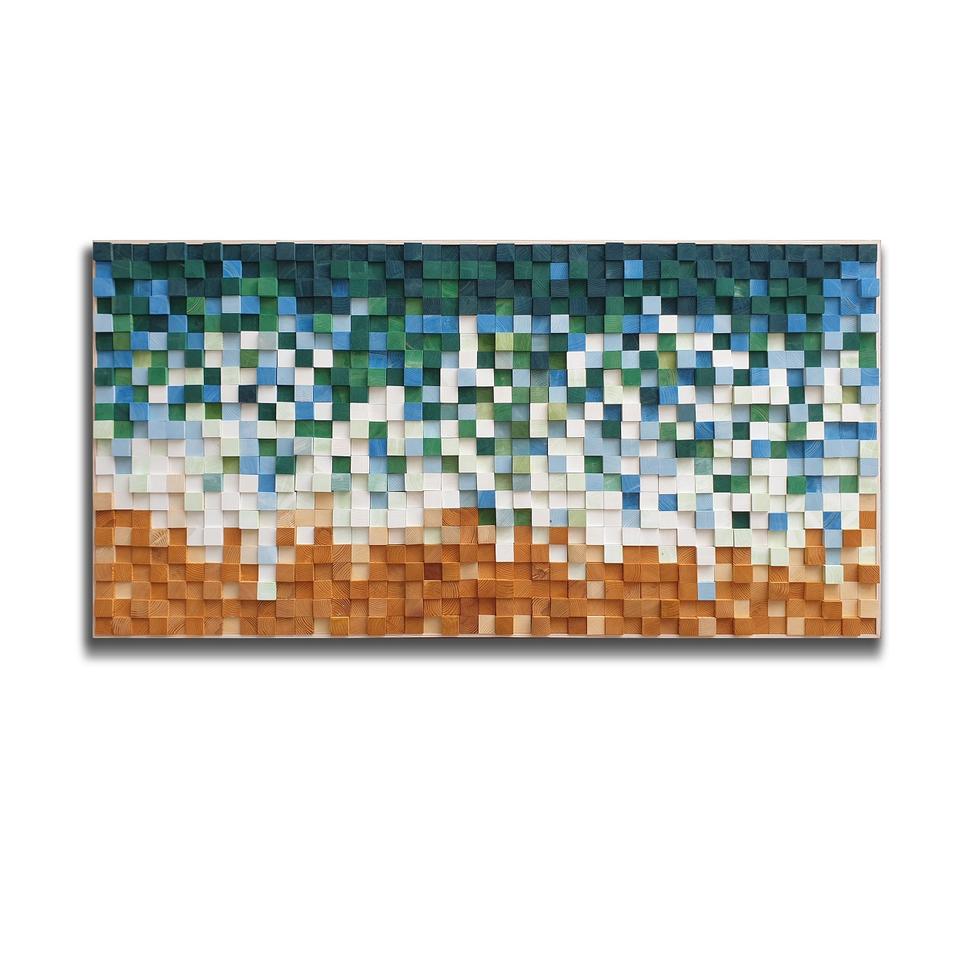 Hecho a mano estilo moderno 3D mosaico madera Panel pared arte mejor calidad patrón abstracto artesanía de madera con marco negro buen diseño de Color