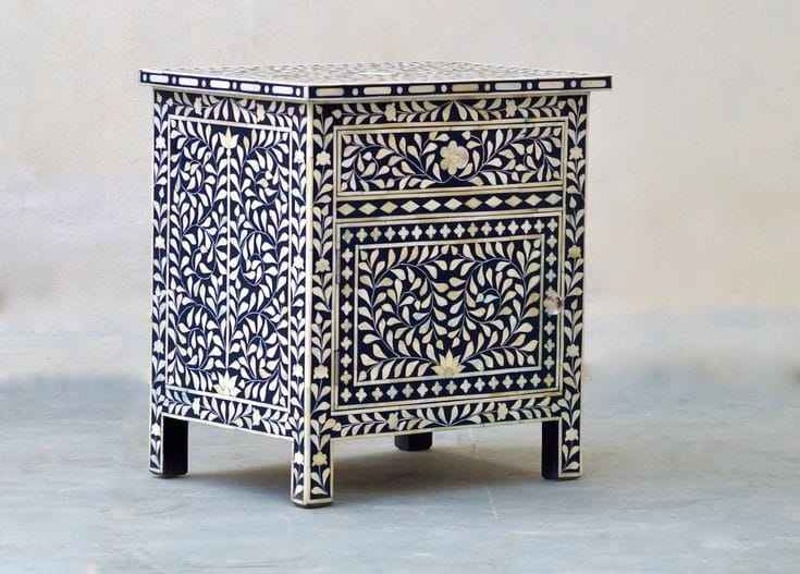 Mesa Consola y Taburetes de Estilo Moderno con Incrustaciones de Hueso Hechos a Mano, Muebles Sofisticados para el Hogar - Mesa de Noche con Incrustaciones de Hueso al por Mayor